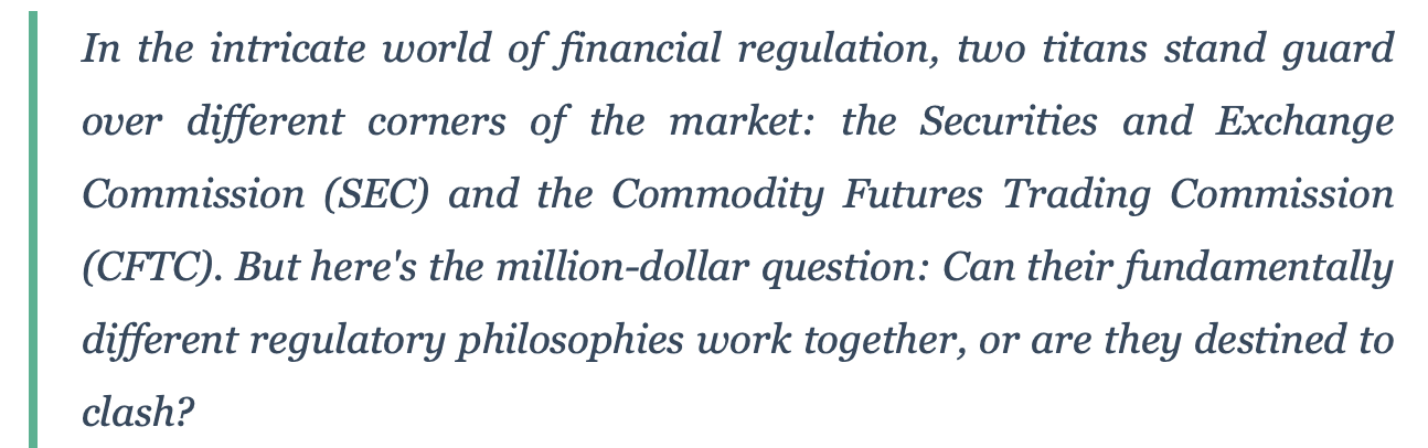 Flexibility Meets Structure: The SEC's prescriptive approach creates a baseline of transparency that everyone understands. The CFTC's flexibility allows for innovation and adaptation. Together, they create a regulatory framework that's both stable and dynamic.