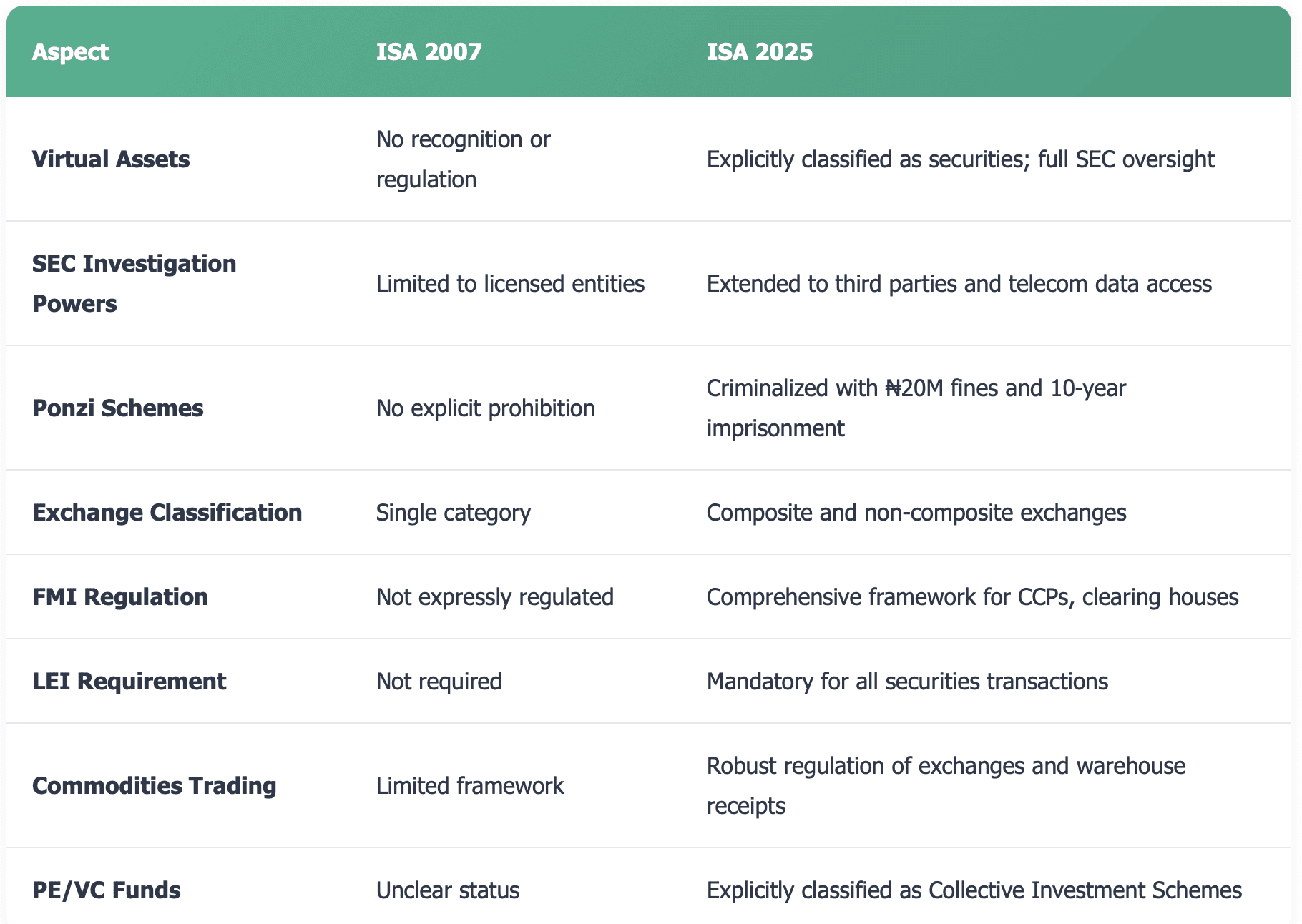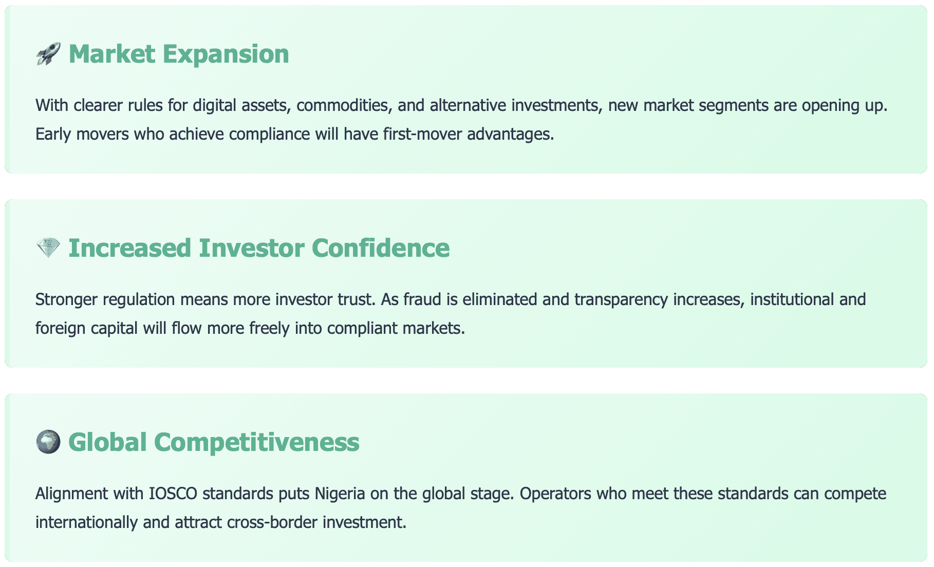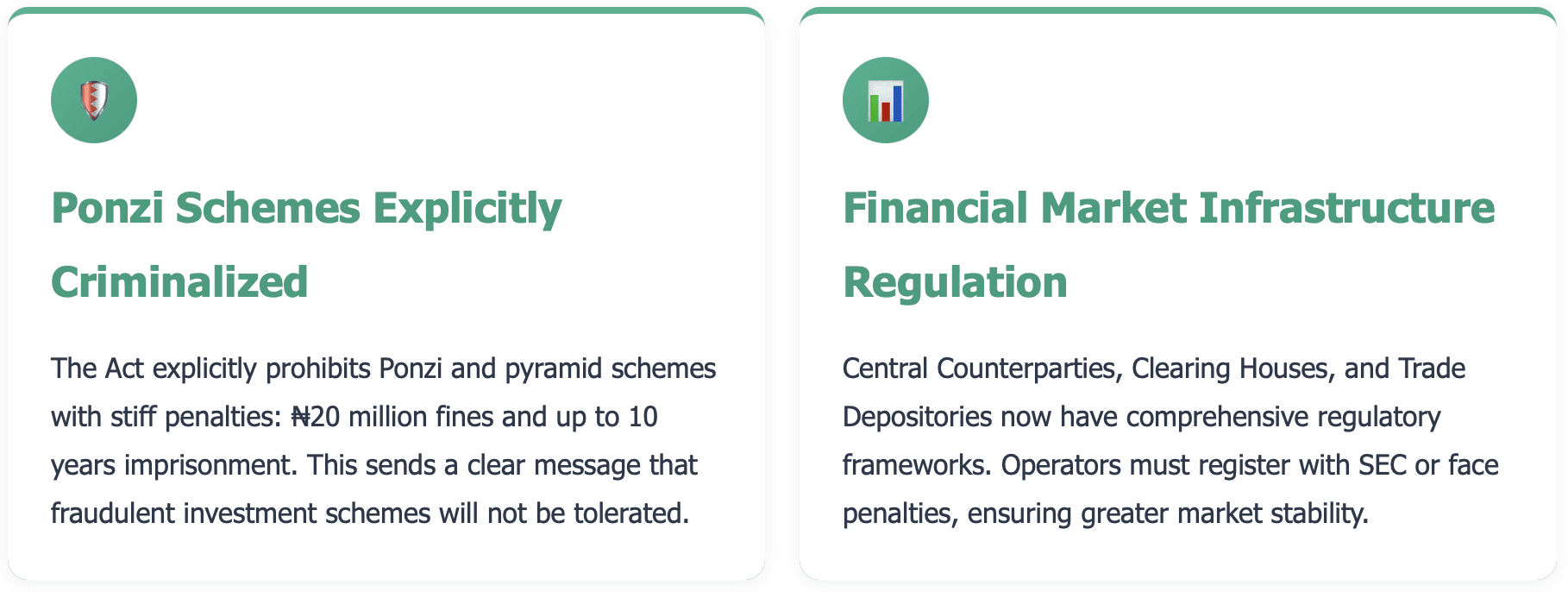 You now have a comprehensive regulatory framework. Registration with SEC is mandatory, and you'll face stiff penalties for non-compliance. This brings clarity and legitimacy to the commodities ecosystem in Nigeria.