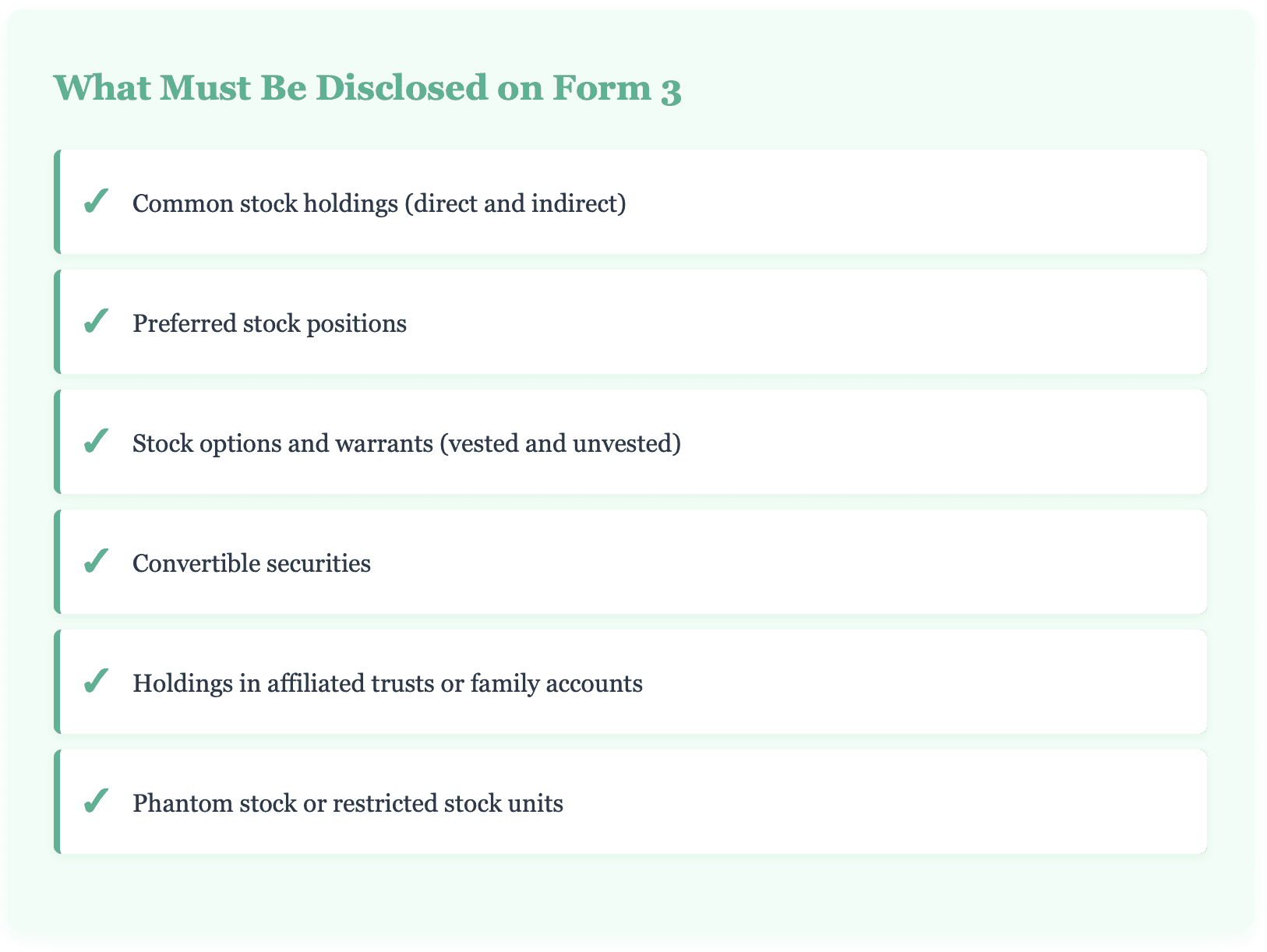 Section 16 extends beyond securities you hold directly. Be prepared to disclose holdings by your spouse, minor children, and any trusts or entities where you exercise investment control. Understanding these attribution rules early prevents last-minute complications.