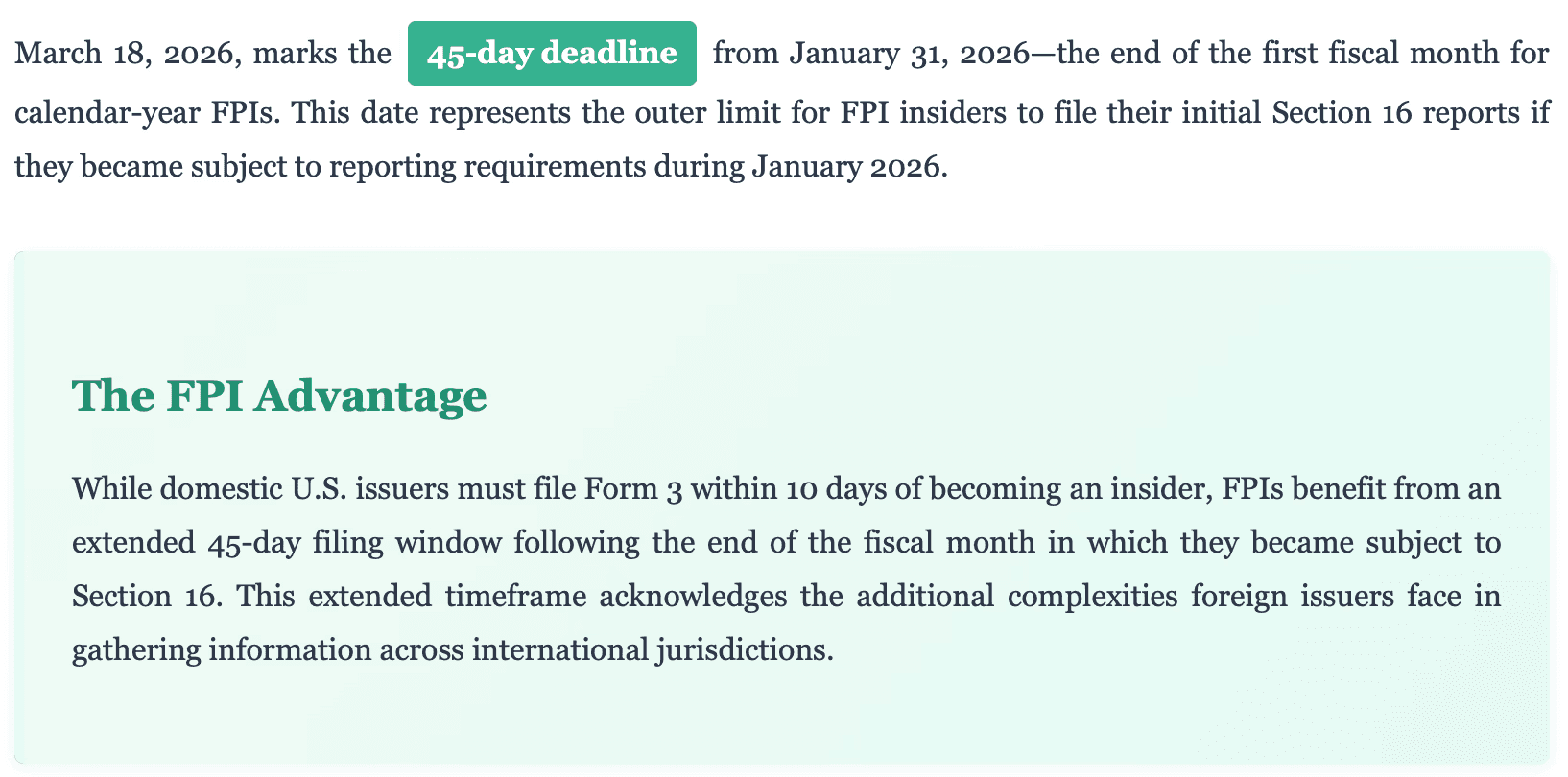 The Section 16 Reporting Timeline for FPIs