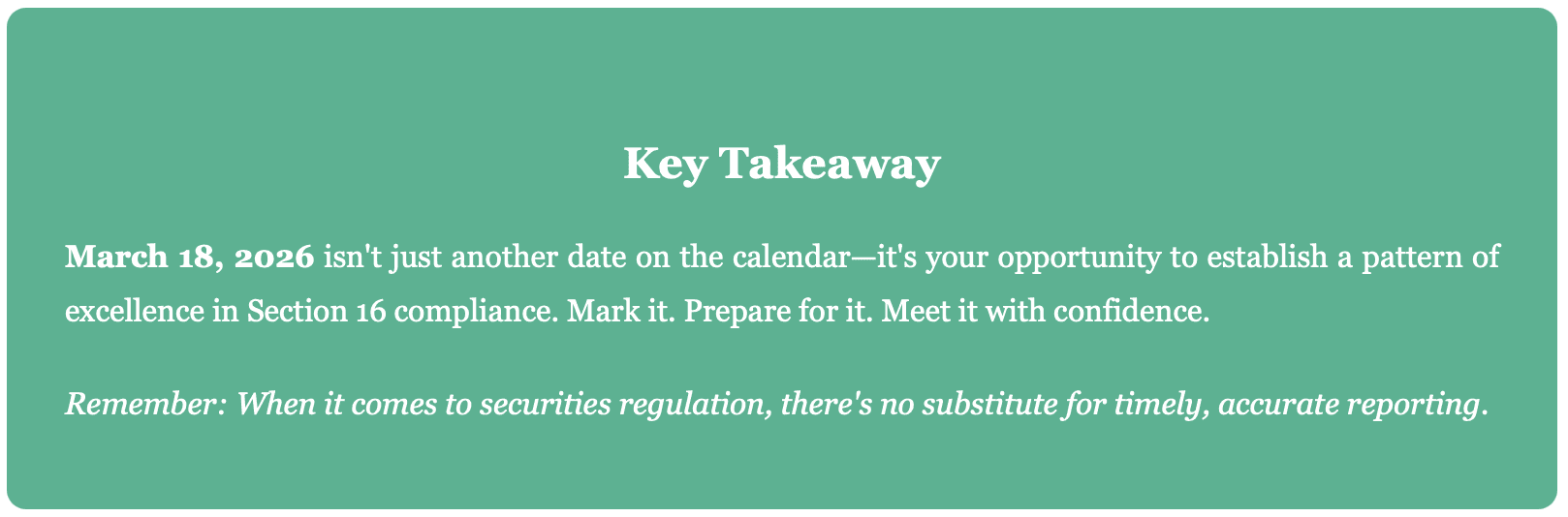 The most successful FPI directors view Section 16 compliance not as a burden but as an integral part of their governance responsibilities. They understand that transparent reporting strengthens market confidence, protects shareholder interests, and upholds the integrity of U.S. capital markets.