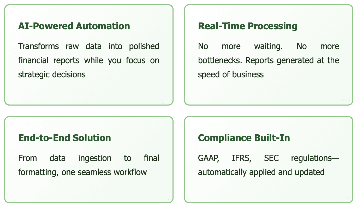"Finrep.ai doesn't just save time—it reclaims your sanity and gives you back the bandwidth to actually think strategically about your business."