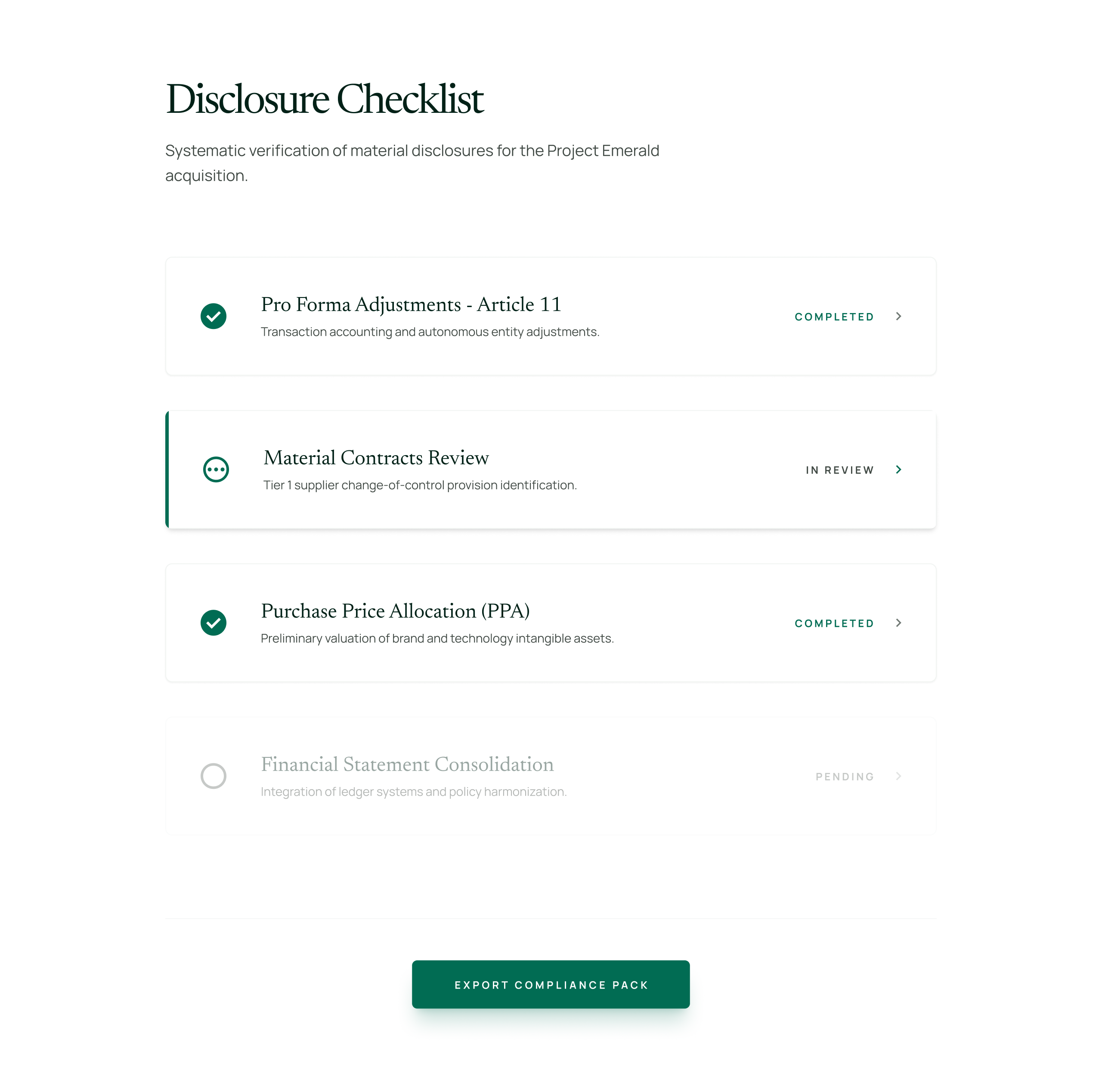 According to Finrep client data, 2025, teams using Finrep's disclosure intelligence tools reduce their SEC reporting preparation time from 10 days to 3 to 4 days, with 60 to 70% fewer review loops with auditors. In M&A contexts, where the filing deadline is fixed by the transaction timeline, this time saving directly reduces transaction execution risk.