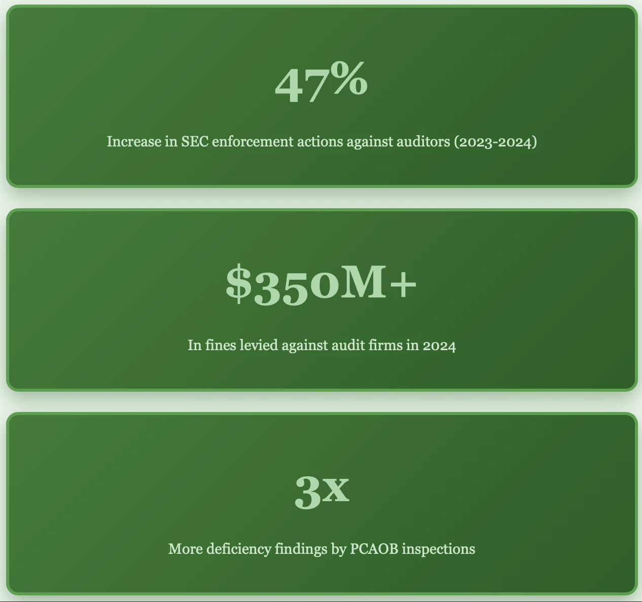 The Securities and Exchange Commission has dramatically intensified its scrutiny of auditors, audit firms, and other financial gatekeepers over the past few years. And this heightened oversight isn't just causing headaches for the Big Four—it's fundamentally changing how your next audit will unfold.