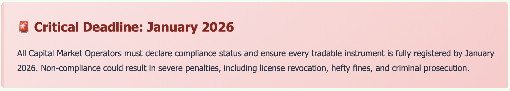 Ensure every instrument under your management is fully registered with the SEC. This is non-negotiable and must be completed by the January 2026 deadline.