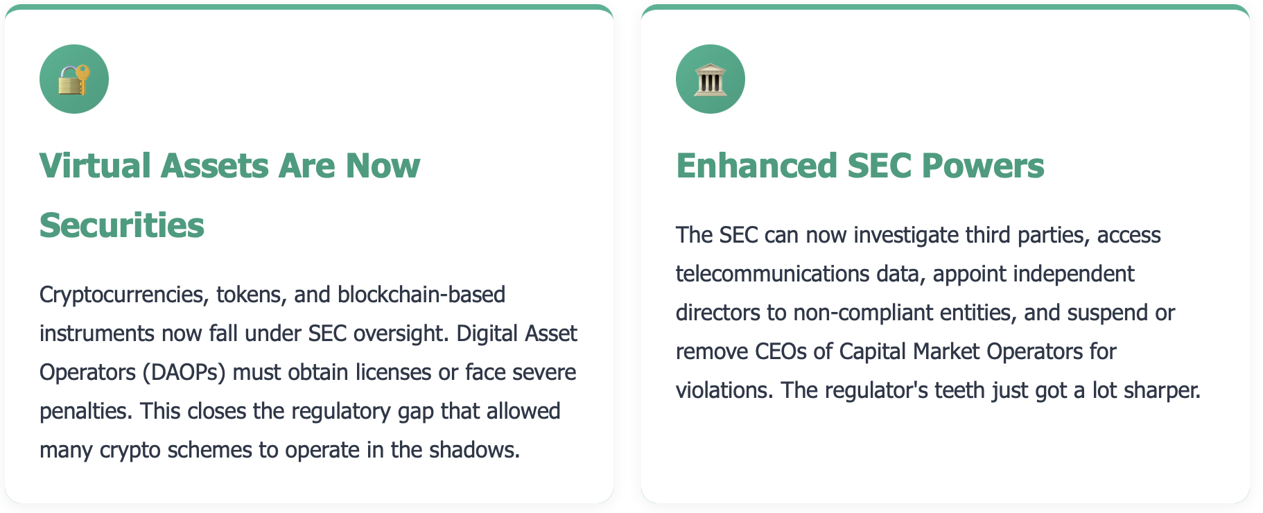 If you deal with virtual assets in any capacity, ensure you have or are applying for the appropriate licenses. Unlicensed crypto operations are now illegal.