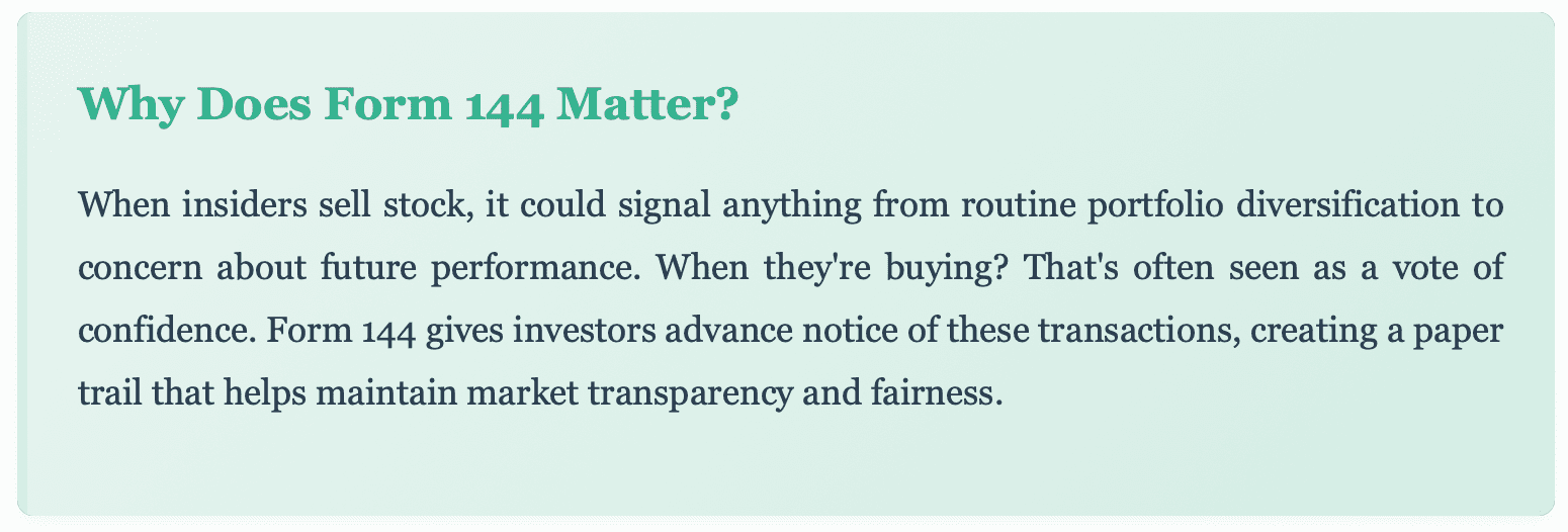 Form 144 might seem like just another regulatory document, but each section tells part of a larger story. Here's what insiders must disclose: