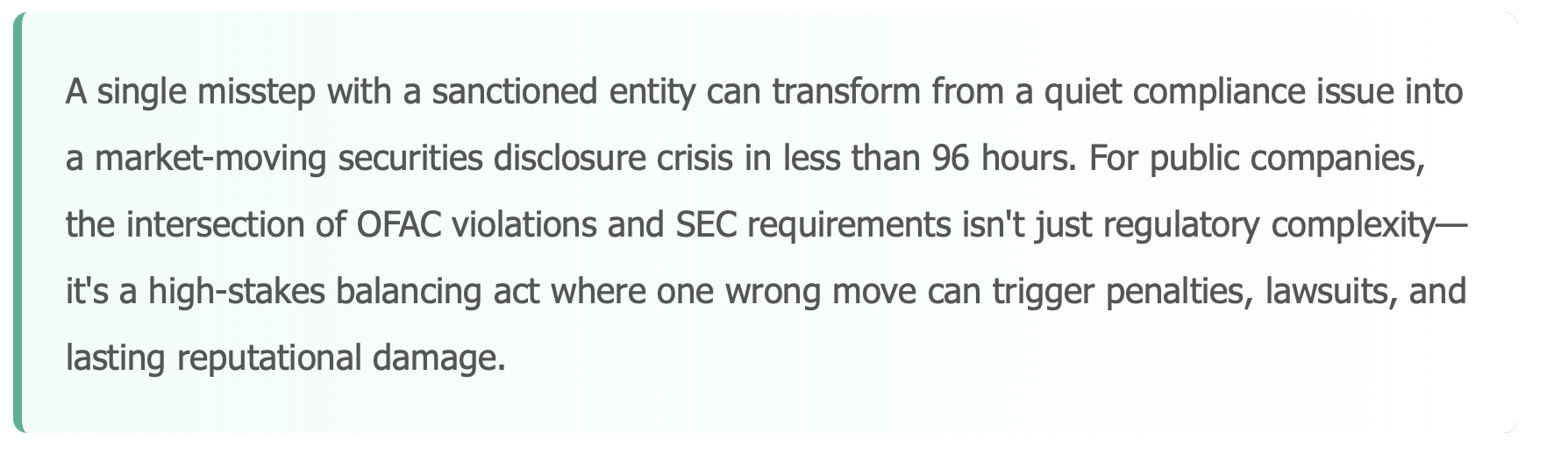 From Sanctions to Scrutiny: How OFAC Violations Create Immediate SEC Disclosure Triggers