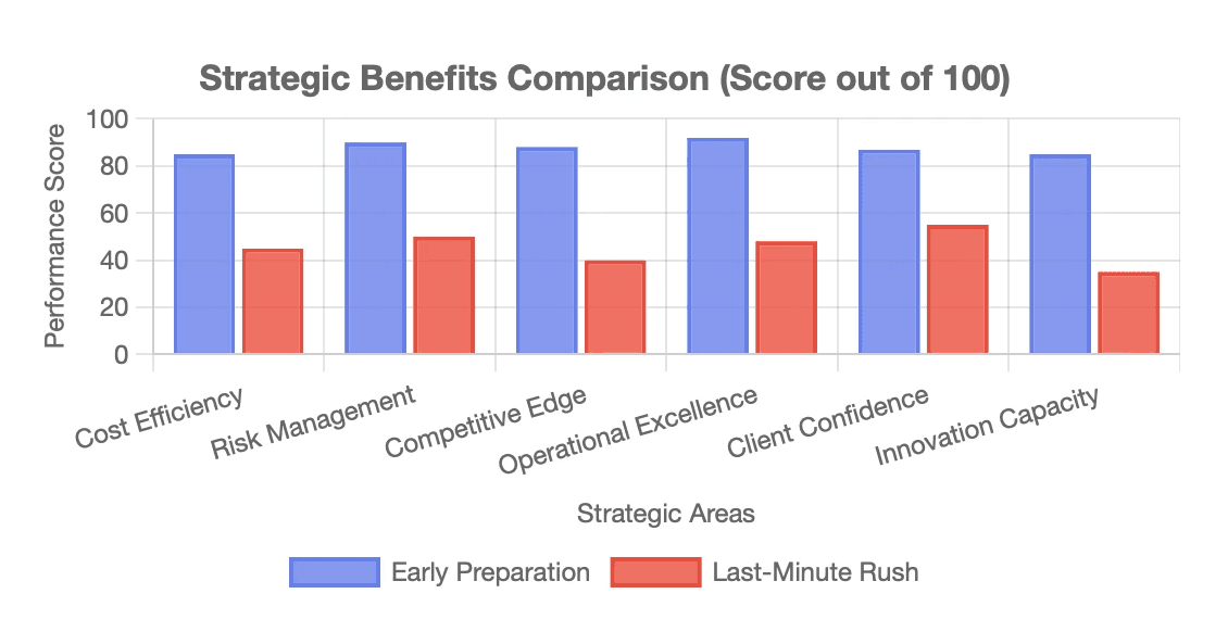 Here's the uncomfortable question for executives: **What message does delayed preparation send to your organization? **That regulatory compliance is optional until it isn't? That strategic planning is less important than reactive firefighting?