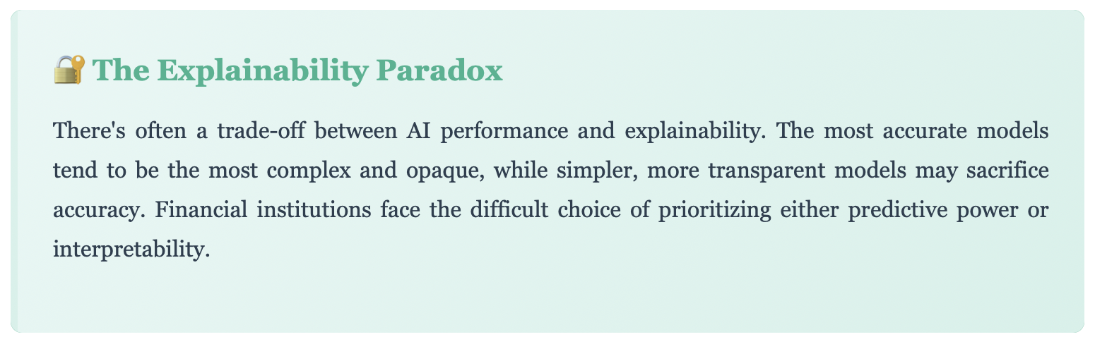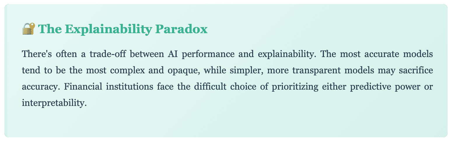 But compliance isn't just about following regulations—it's about building trust. Financial institutions that can't explain their AI decisions face reputational risks, legal challenges, and erosion of customer confidence. In a sector built on trust, opacity is a liability.