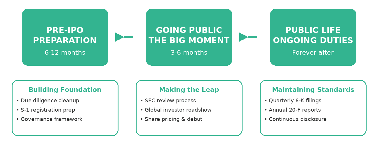 The path from IPO to 20-F filing isn't just about regulatory compliance – it's about building a sustainable framework for transparent, accountable public company operations. Companies that view this journey as an opportunity to strengthen their business practices, rather than merely a compliance burden, tend to create lasting value for all stakeholders.