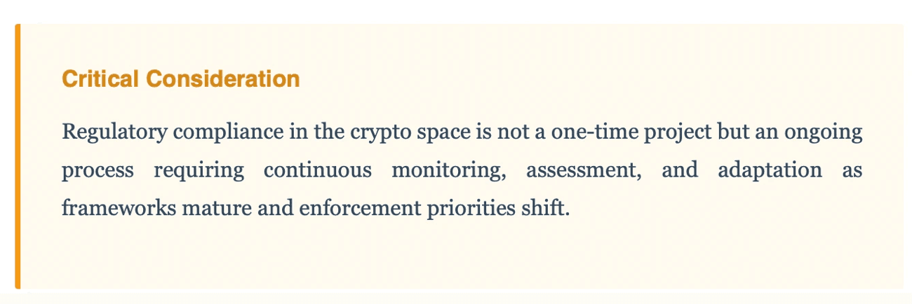 - Conduct comprehensive regulatory audits across all jurisdictions where your organization operates or plans to engage in crypto activities