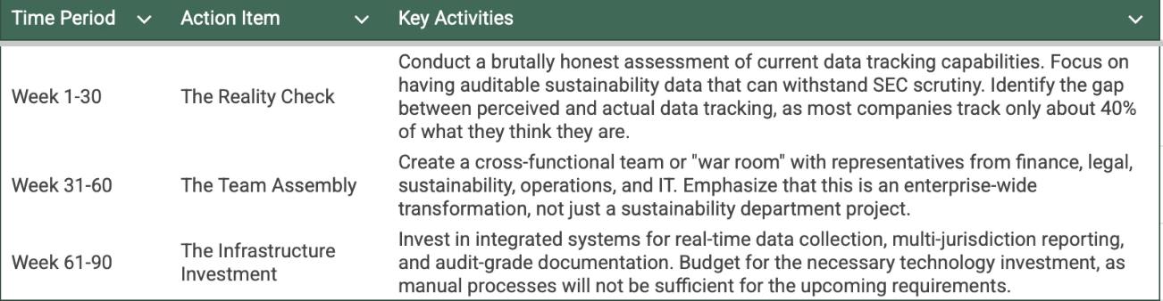 Companies that treat this as a one-time compliance project will face repeated adjustment costs as new mandates arrive. Companies that build scalable ESG data infrastructure now will have lower marginal costs for each subsequent disclosure requirement.